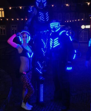 Daher können Sie sicher sein, dass unsere Stelzenläufer einzigartige LED- und Stelzenläufer Shows vorführen und bereits in ganz Deutschland auf bekannten Bühnen animiert haben.