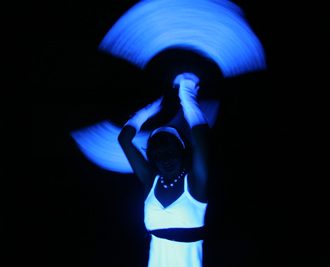 Tanz mit Feuer-Schalen, Fächern, Poi, Stäben und Seilen