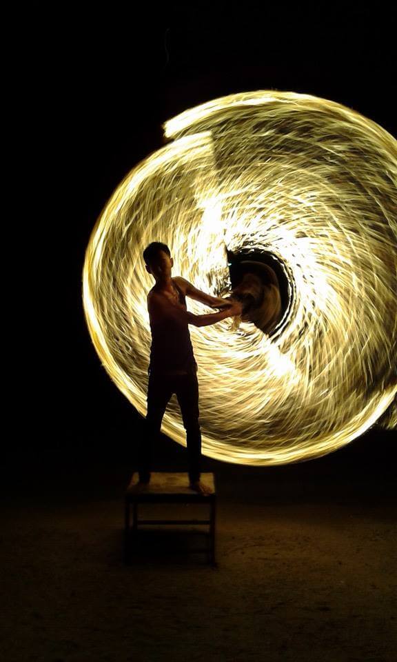 Schon mit 17 Jahren kam er nach Thailand, wo er lernte mit Feuer-Sticks und -Pois zu tanzen und damit zahlreiche Menschen jeden