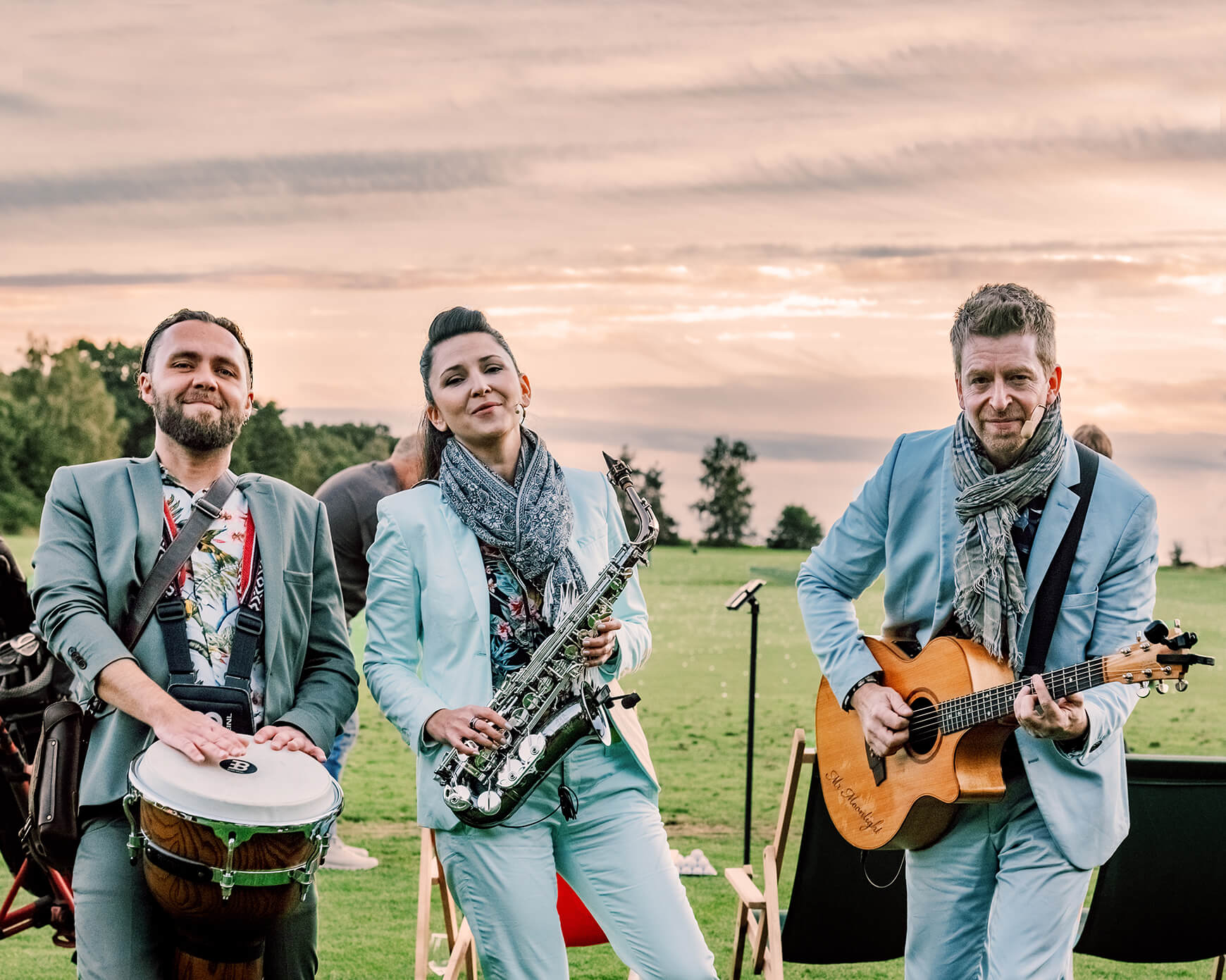 Egal an welcher Stelle der Lokation, wir sorgen von Anfang an für eine tolle Atmosphäre. Beste, groovige Live – Musik zum Träumen und Genießen, Mitsingen und Feiern – einfach für eine perfekte Stimmung zu jeder Zeit. Unser „Trio to go“ spielt über eine kleine, mobile Tonanlage und ist mit Akustik Gitarre/ Sänger, Sängerin / Saxofon, mobilem kleinem Schlagzeug auf der gesamten