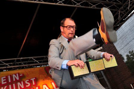 Kleinkünstler Krawalli ist multifunktional einsetzbar! Seine Jonglageshow eignet sich für Betriebsfeier, Stadtfest und Vereinsjubiläum. Als falscher Kellner unterhält der Künstler mit Situationskomik und Taschenspielertricks die Gäste einer Gala ebenso galant wie bei einer “Schlemmermeile” in der Fußgängerzone. Seine Walkacts als Polizist und Straßenfeger überraschen durch authentische Schauspielerei und mit intelligenten Gags bei Messe-Veranstaltungen und Straßenfesten. Der Comedy-Jongleur ist auch als Moderator zu buchen